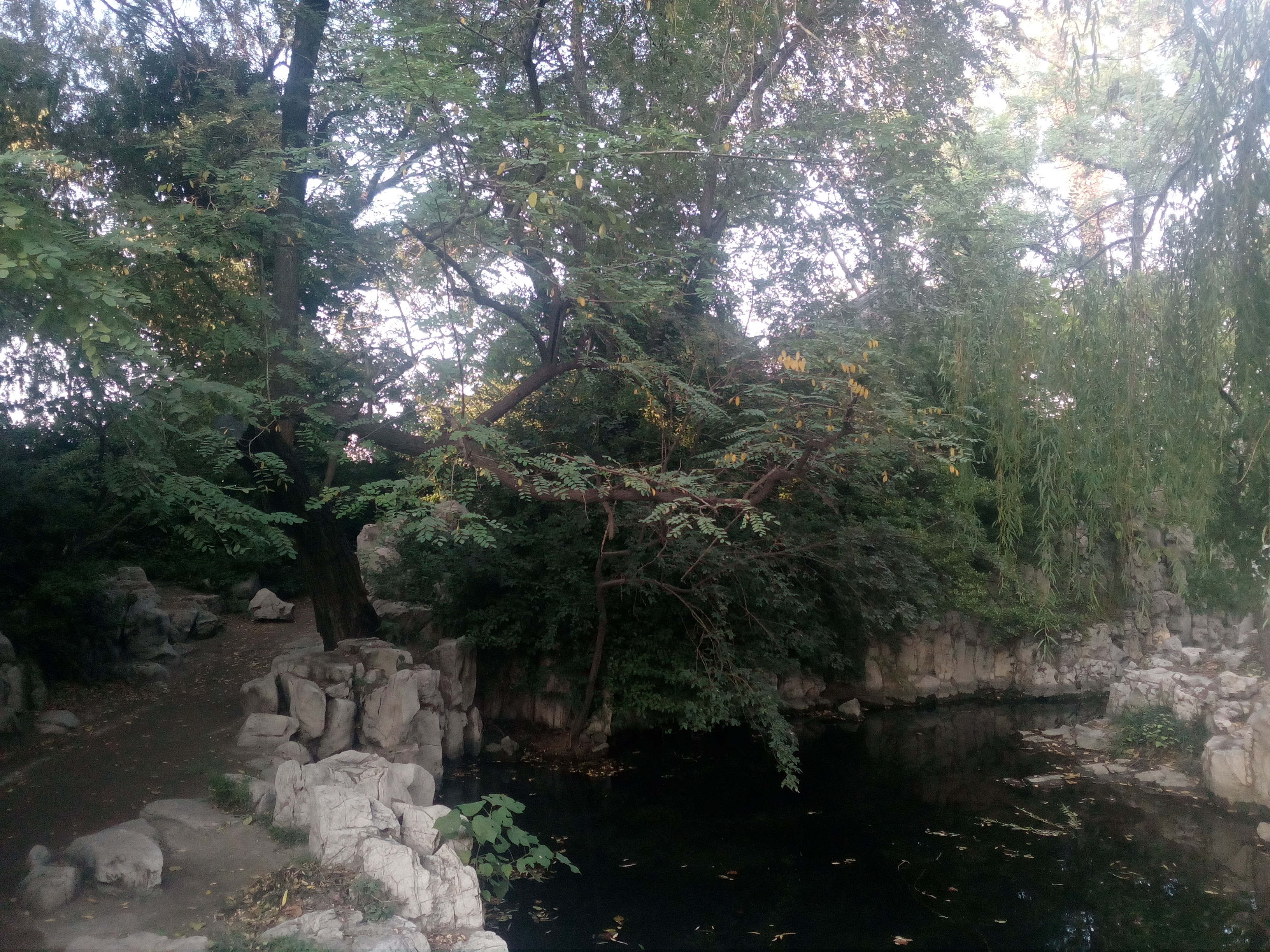四边浓荫一池清,万念喧嚣半刻静。